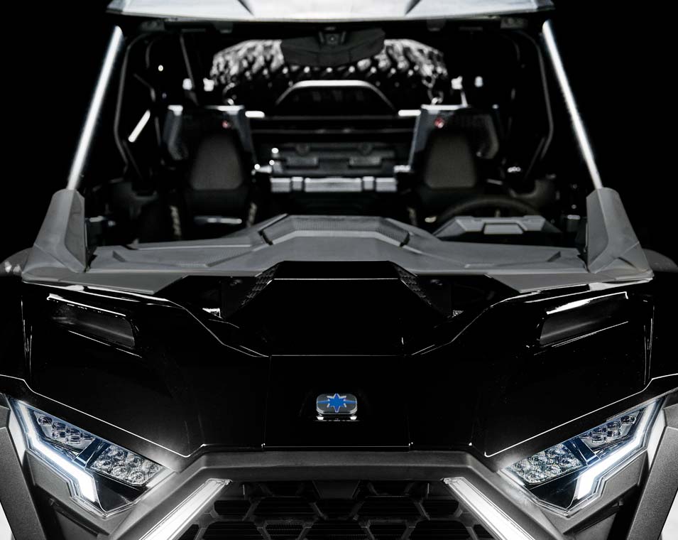 Luces Signature de Acento Animadas RZR Fang; LED Blanco en Bajas/Altas & Luces Traseras/Freno LED Roja; Luces de Acento Interiores Animadas